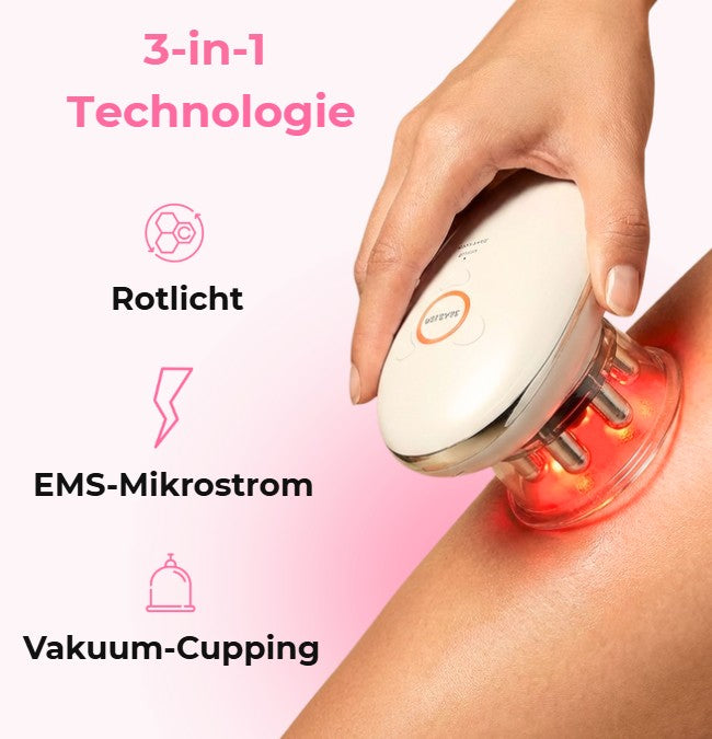 Ja. Das SkinGlow 3-in-1 Massagegerät wurde entwickelt, um Cellulite sichtbar zu reduzieren, die Haut zu glätten und das Gewebe zu straffen. Die Kombination aus Saugtechnologie, rotem LED-Licht und sanften EMS-Impulsen verbessert die Durchblutung, unterstützt den Lymphfluss und fördert eine festere, glattere Hautstruktur.
